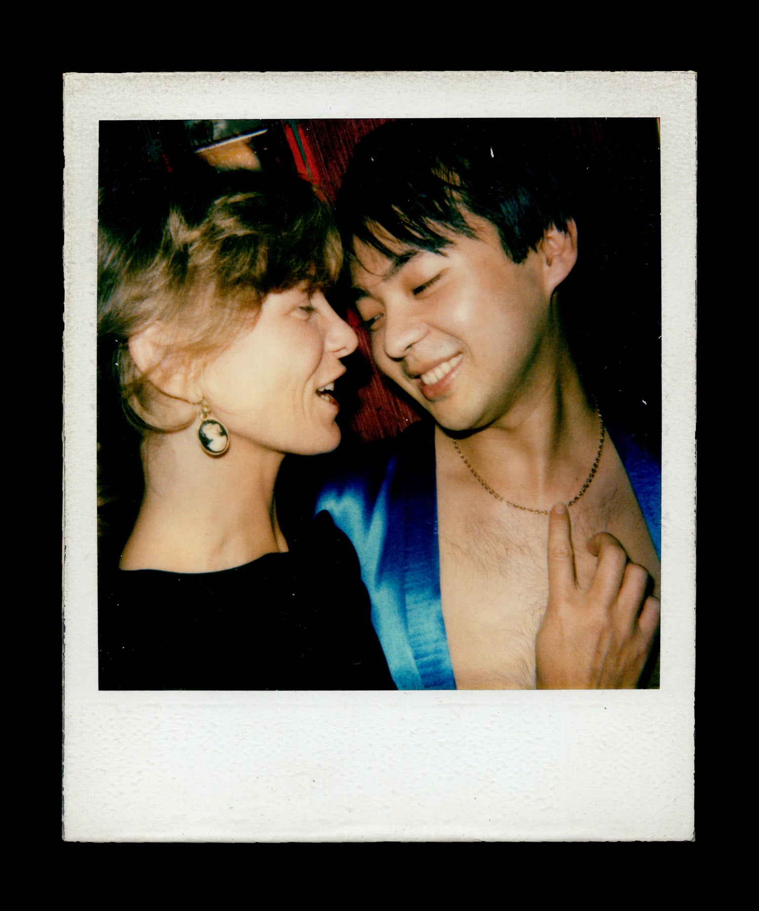 Davé’s clientele were his customers and his friends. The restaurant was always open but also, according to the sign on the door, always COMPLET. If you knew Davé you would be seated and served, without a menu or regard to prices. It was an open secret that everyone was there and yet absolute privacy was maintained. And all secrets would remain sealed but for the fact that Davé took pictures, Polaroids of everyone who was anyone, photos with him in early selfie style, with each other in, in endlessly unexpected combinations, and solo, in disarmingly off-guard portraits. These are the pictures that make up A NIGHT AT DAVÉ, a Polaroid book of historic proportions.