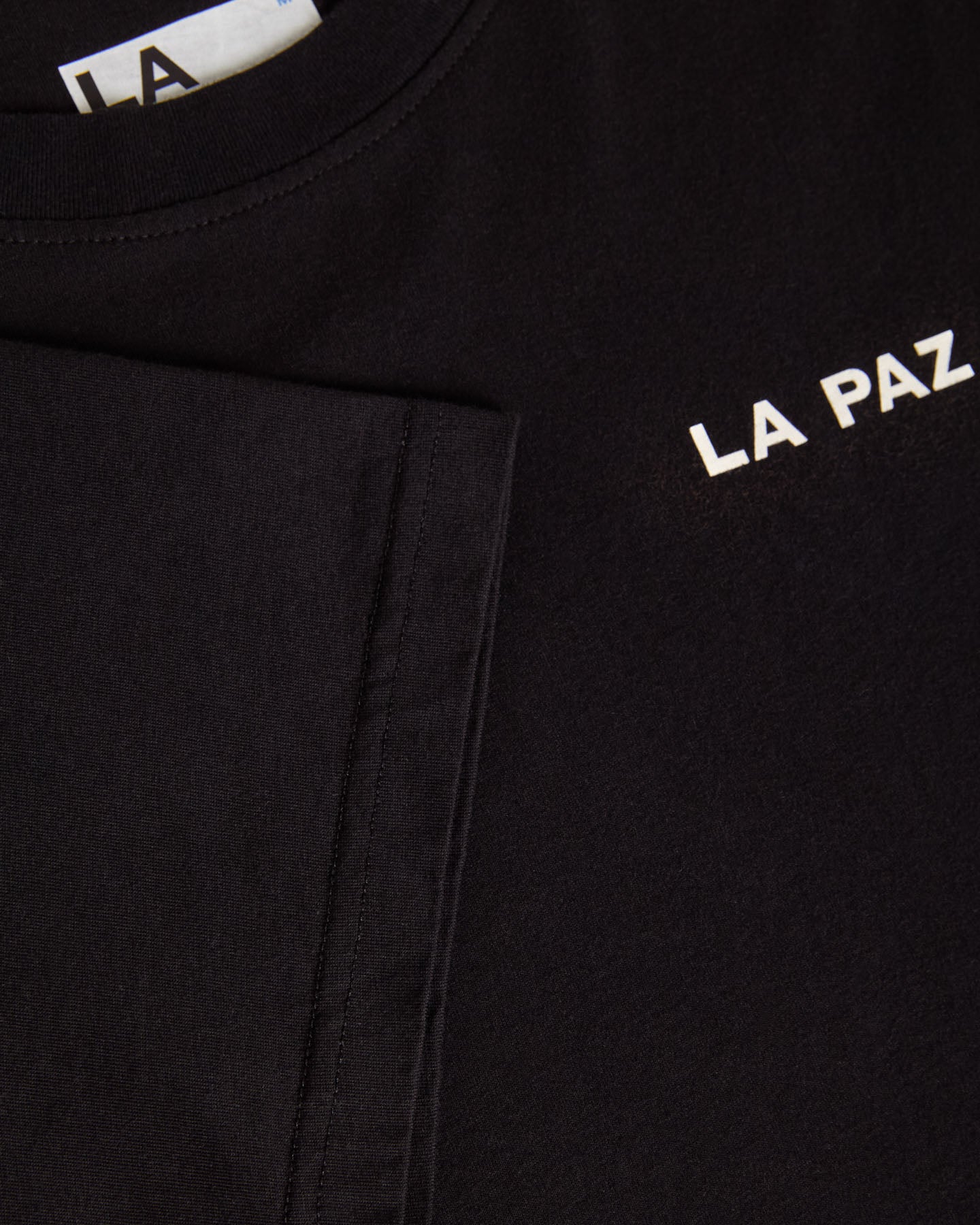 The Botelho Vague Black T-shirt offers a soft, comfortable feel and showcases the word "VAGUE," a popular print from previous collections. The front remains minimal with a discreet La Paz logo.