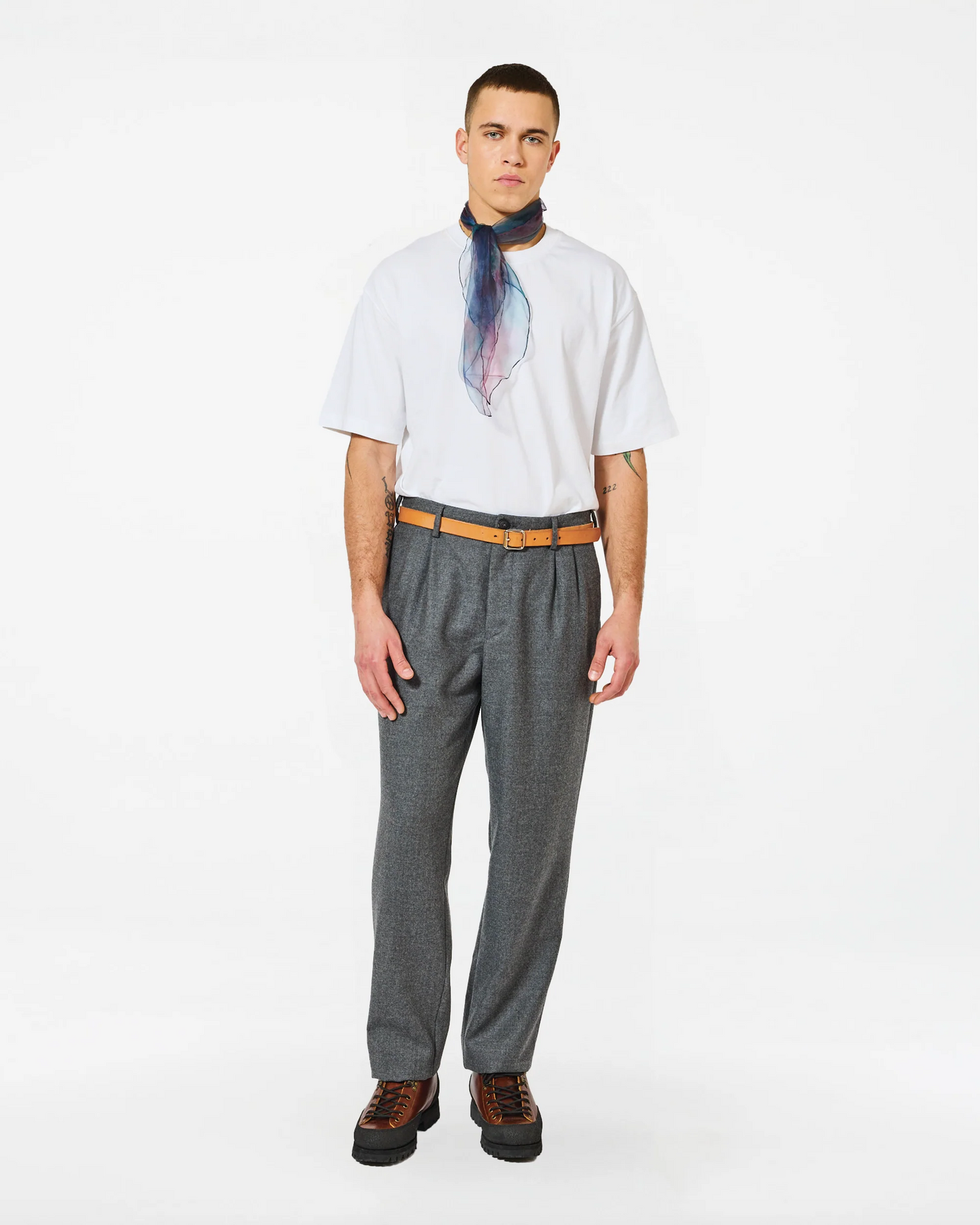 The Tosho Marz is a wide-leg pleated trouser that blends comfort with structure. It features a tailored waistband with a zip fly, slanted side pockets, and double buttoned welt pockets at the back. A refined silhouette for effortless smart-casual dressing.